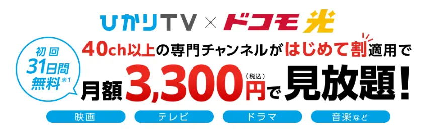 ドコモ光は、固定電話やテレビといった基本的なオプションに加え、ドコモならではの多彩な映像配信サービスやサポートが充実しているのが特徴です。
