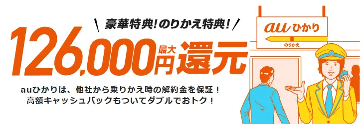auひかりに乗り換えることで、他社の解約金や工事費残債を最大60,000円まで補填してくれます。