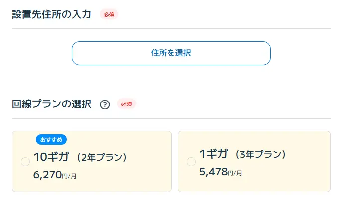 まずは、そもそも現在の住所が10ギガエリアに対応しているか確認してください。