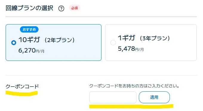 | 10ギガ (2年プラン) | 6,270円 | 6,270円 |