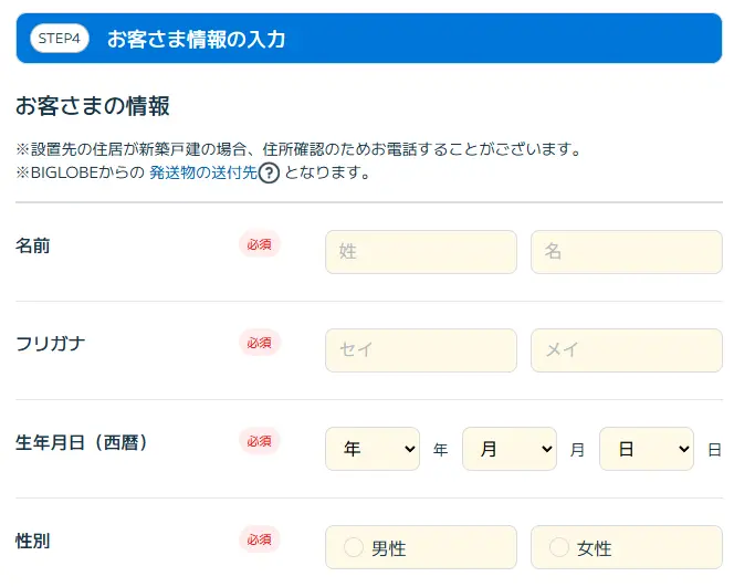 公式サイトからビッグローブ光を申し込む具体的な手順は下記をご確認ください。