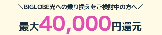 | 他社乗り換え補填 | 他社から乗り換えで最大40,000円キャッシュバック (3ヶ月後) | |