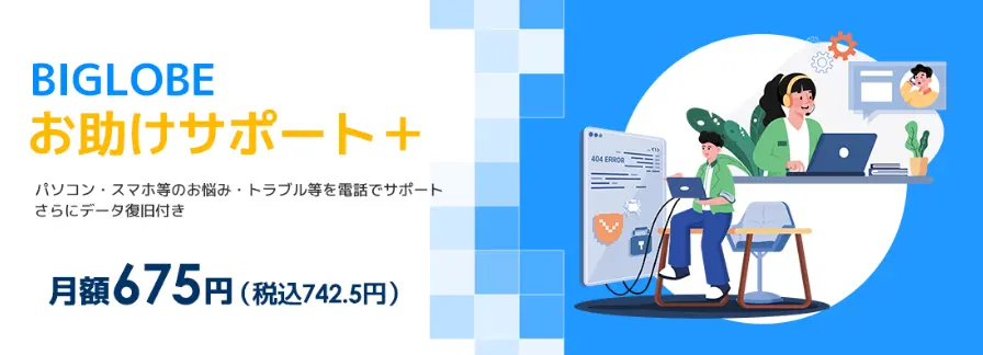 | サポートオプション | 設定や操作をサポートするBIGLOBEお助けサポート+(月額638円)が最大2ヶ月無料 | |