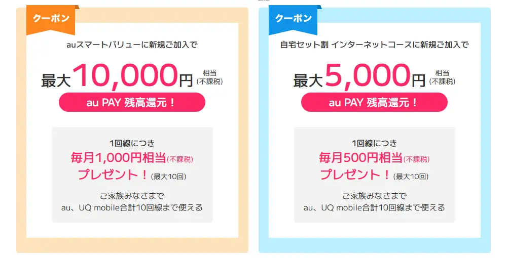 | au/UQモバイルとセットでau PAY最大10,000円還元 | ||