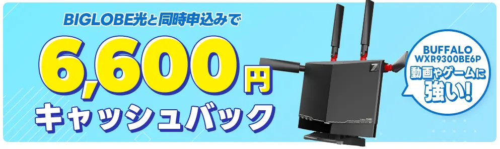 ビッグローブ光と10ギガルーターを同時申し込みで最大11,600円のキャッシュバックが貰えます。