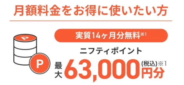 nifty光10ギガは月額割引やキャッシュバックはありますが、工事費は有料となります。
