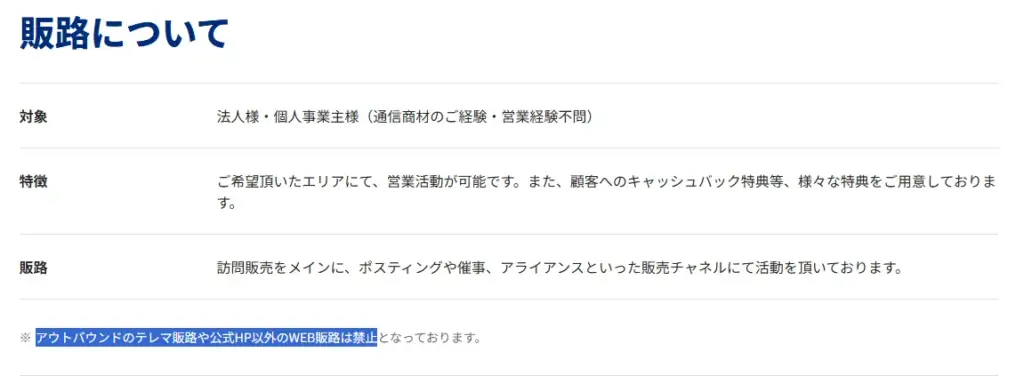 ●アウトバウンドのテレマ販路(電話勧誘)●公式HP以外のWEB販路(独自サイトでの受付)は禁止