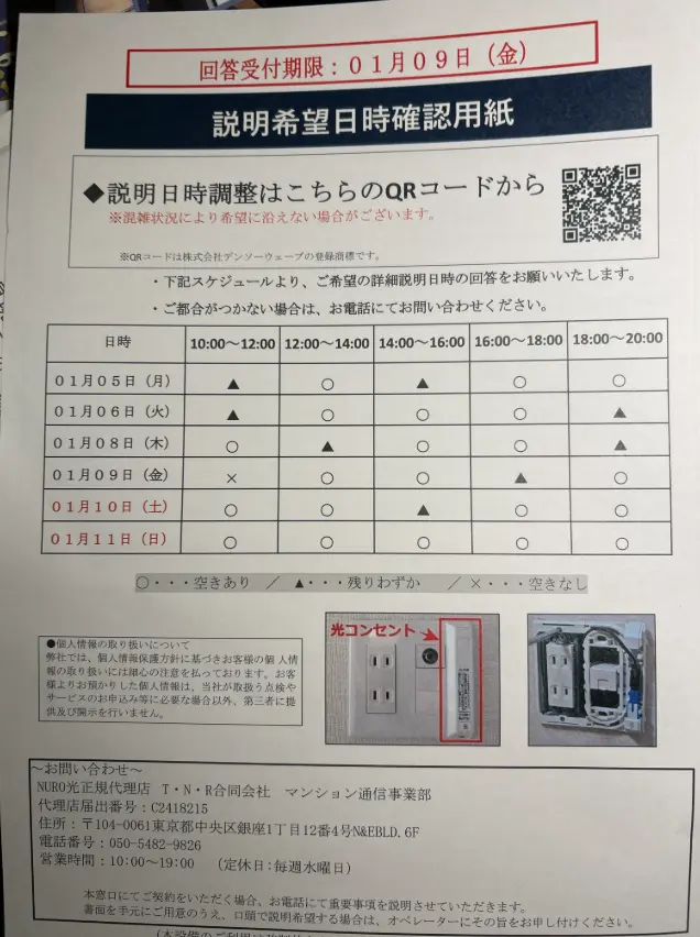 | T・N・R合同会社 | ポスティング | ・5年前からマンションでNURO光を利用しているが「NURO光(マンションタイプ)が使用可能エリアとなりましたのでお知らせします」と怪しいポスティングしてきた(出典:電話帳ナビ) |