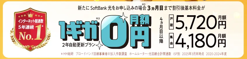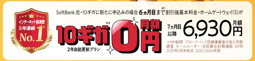2025年10月現在、ソフトバンク光を申し込むなら最もオトクな申込窓口です。