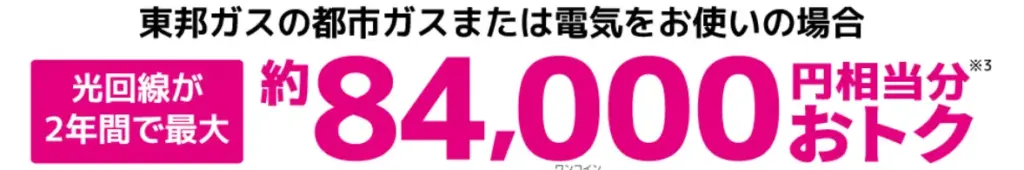 特にオプション等の条件なく、東邦ガスと光回線のセットで月額770円割引になるためです。