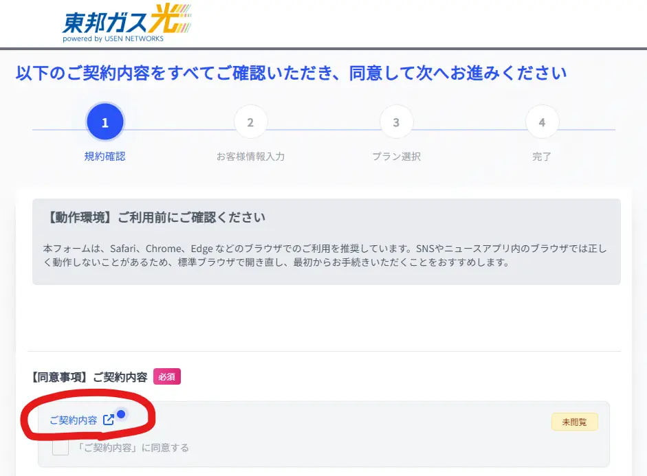続いて東邦ガス光公式特設サイトにある「契約お申し込みはこちら」ボタンから申し込みフォームに進みます。