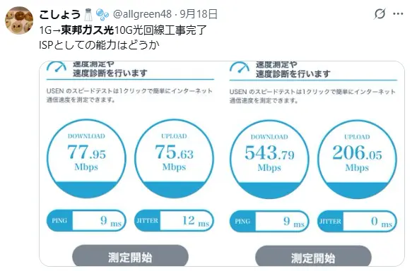 ひとまず新ネット環境で様子見る。使用中のインターネットの速度は: 1.1Gbps. お使いのインターネットの速度はどのくらいですか?