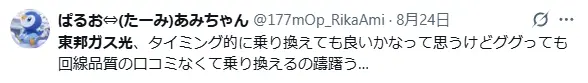 X(旧Twitter)を中心に、東邦ガス光に関する良い評判と悪い評判を調査しました。